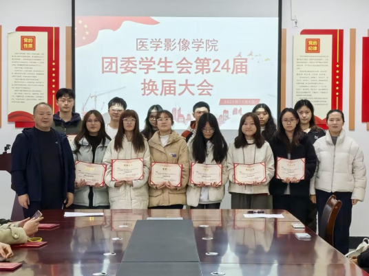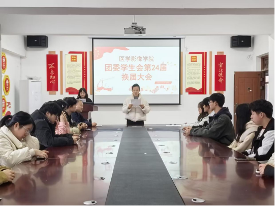 2025年11月7日,医学影像学院顺利举行第二十四届团委学生会换届表彰暨聘任大会,医学影像学院党委副书记王良永、专职辅导员阮佳佳及学院全体学生会成员齐聚一堂,共同回顾过去一年的工作成果,展望新一届学生会的使命与未来。