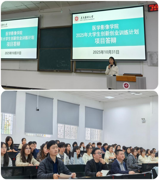 2025 年 10 月 31 日,医学影像学院2025年大学生创新创业训练计划项目现场答辩在新蒲校区第二教学楼第3 阶梯教室顺利举行。此次答辩活动聚焦科研实践,为本科生提供了展示科研成果的平台,对助力人才培养具有重要意义。
