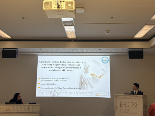 会议期间,冉海峰分别以 "Glymphatic system dysfunction in children with focal epilepsy evidenced by DKI-ALPS and DTI-ALPS index" ,"Glymphatic system dysfunction in childrenwith MRI-Negative focal epilepsy and relationship to cognitive impairment : A multimodal MRI study" 为题作两项大会发言,介绍了遵医附院医学影像科研究团队与脑功能影像相关的最新研究成果,为神经精神疾病的相关功能影像研究提供了更多依据和支撑。